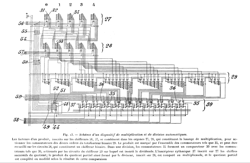 Couffignal’s description of how his electrical-binary machine would multiply and divide.