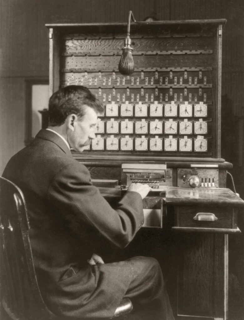 Hollerith in front of his tabulator, 1894. Source: Colombia University