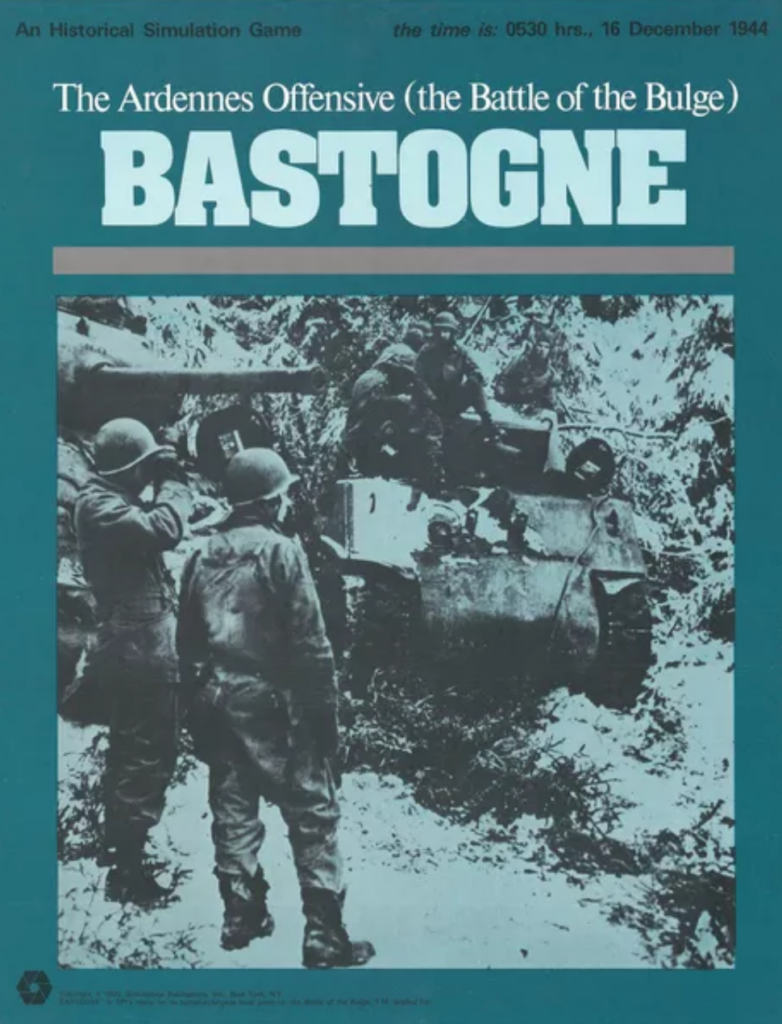 Presumably, “dwindling fuel” did not make it in the final product, but the logistical nightmare of moving huge forces along roads is there, thanks to, as Kroegel explains it, “road movement being really the only viable movement through the forested and rough terrain of the Ardennes […] Such a design created natural traffic jams behind key bridges and clogged limited road avenues.” However, designer notes in a publication like Computer Gaming World are always going to be at least a bit personal branding, and Kroegel did not mention what I believe must have been his main inspiration: SPI’s Bastogne (1969), as identified by commenter Ken Rutsky.