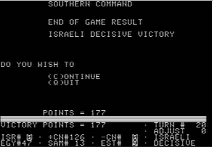 All had gone so well until the last few turns, and then the Egyptians decided to go on the offensive and registered some significant victories. To an extent, it is historical, at the last moment the Egyptians stopped the Israeli tide West of Suez and won the battle of Ismailia. This earned them a way better peace treaty than if they had been steamrolled fully, which possibly helped with the later long term resolution of their border conflict with Israel.