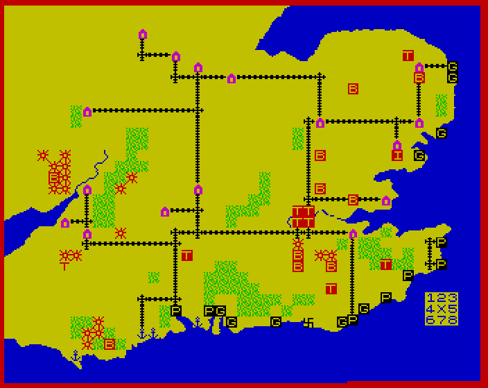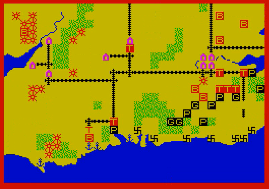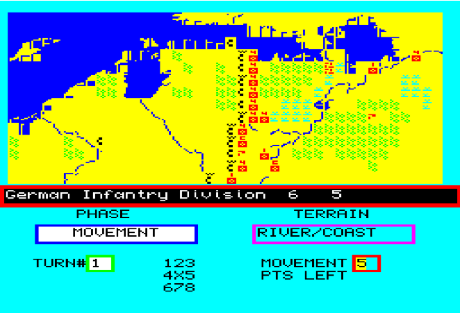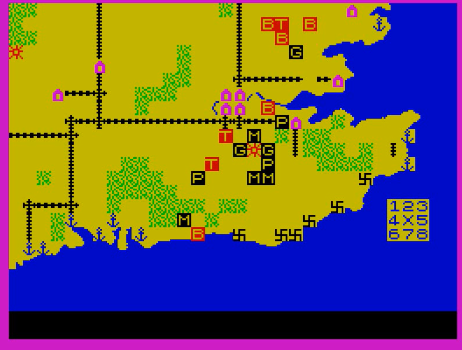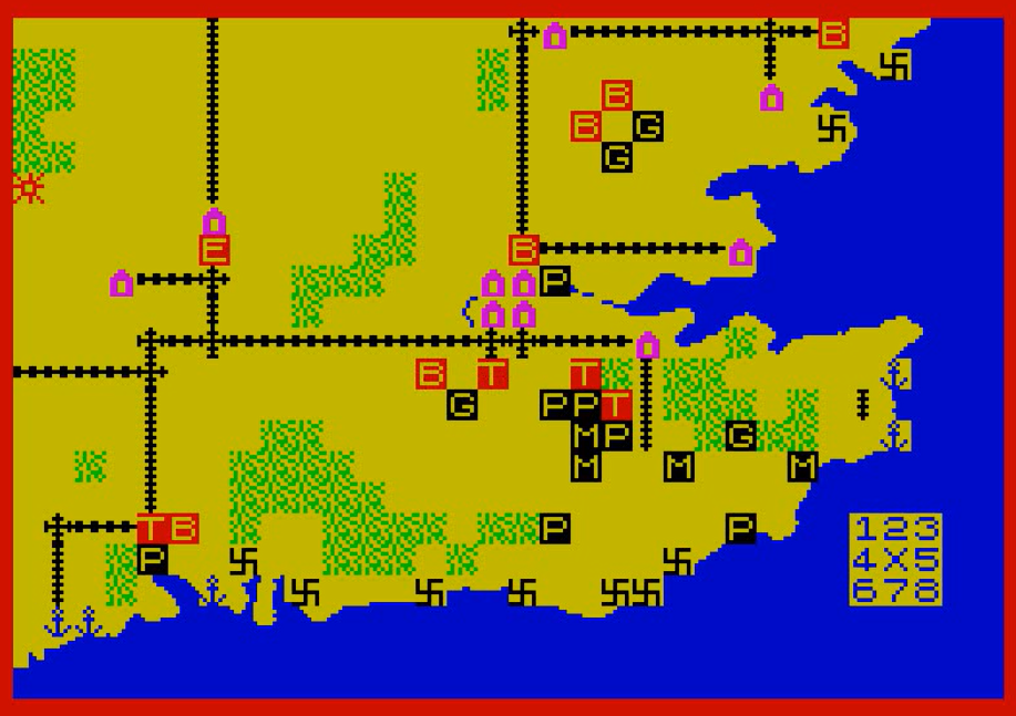 Now moving to the last one: Britain Invaded. It is the best title, but alas the only one whose manual is missing. It returns to the letter-code, but keeps the large map of Ardennes (or introduced it, if it was an earlier game after all).
