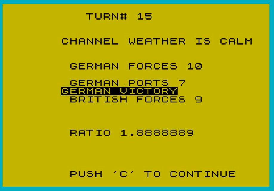 If it’s below 1, then the British win. Else, cue the Man in the High Castle. Additionally, losing London is also an instant loss for the British.